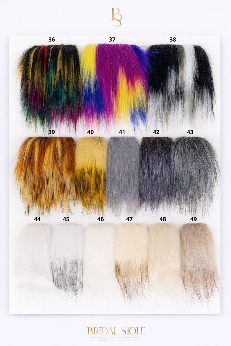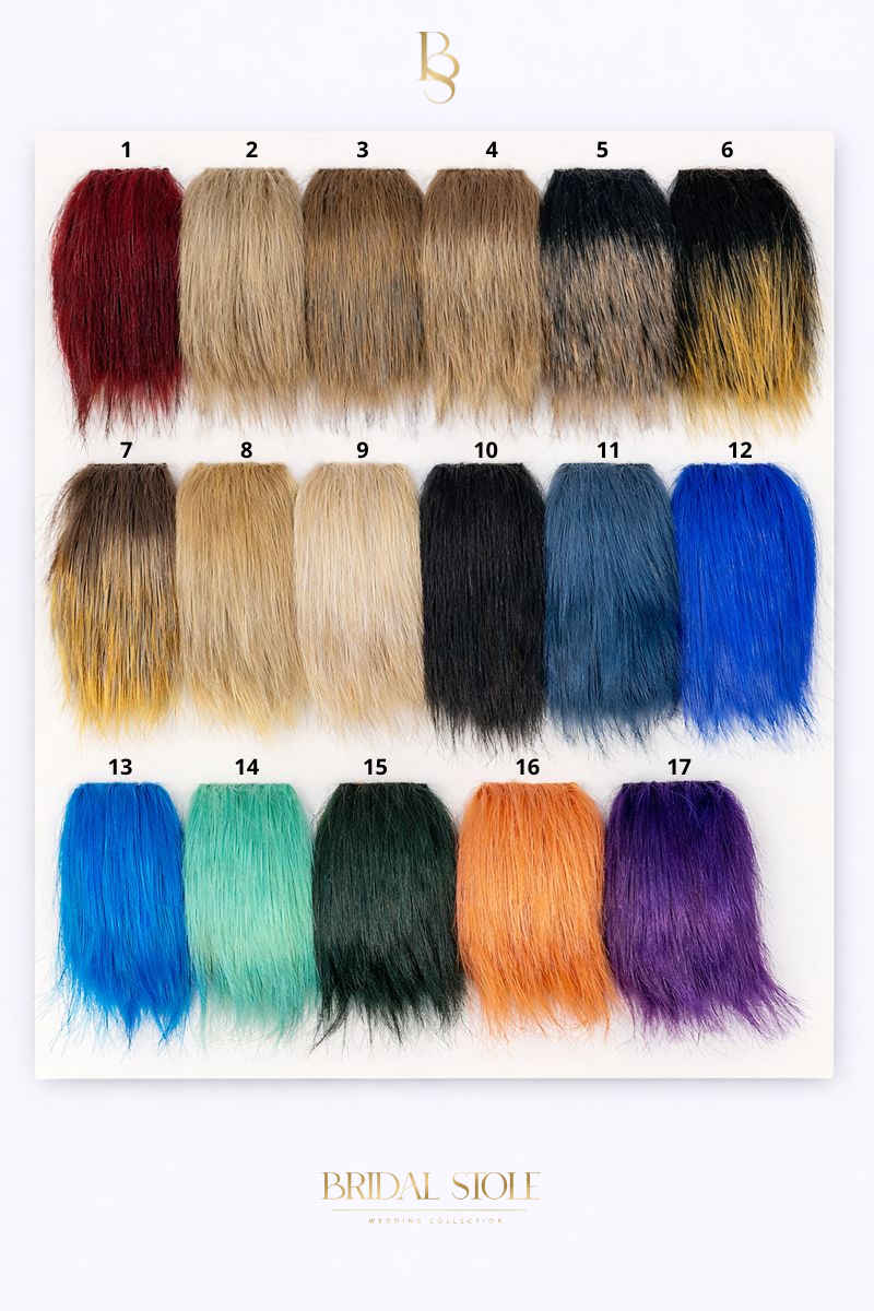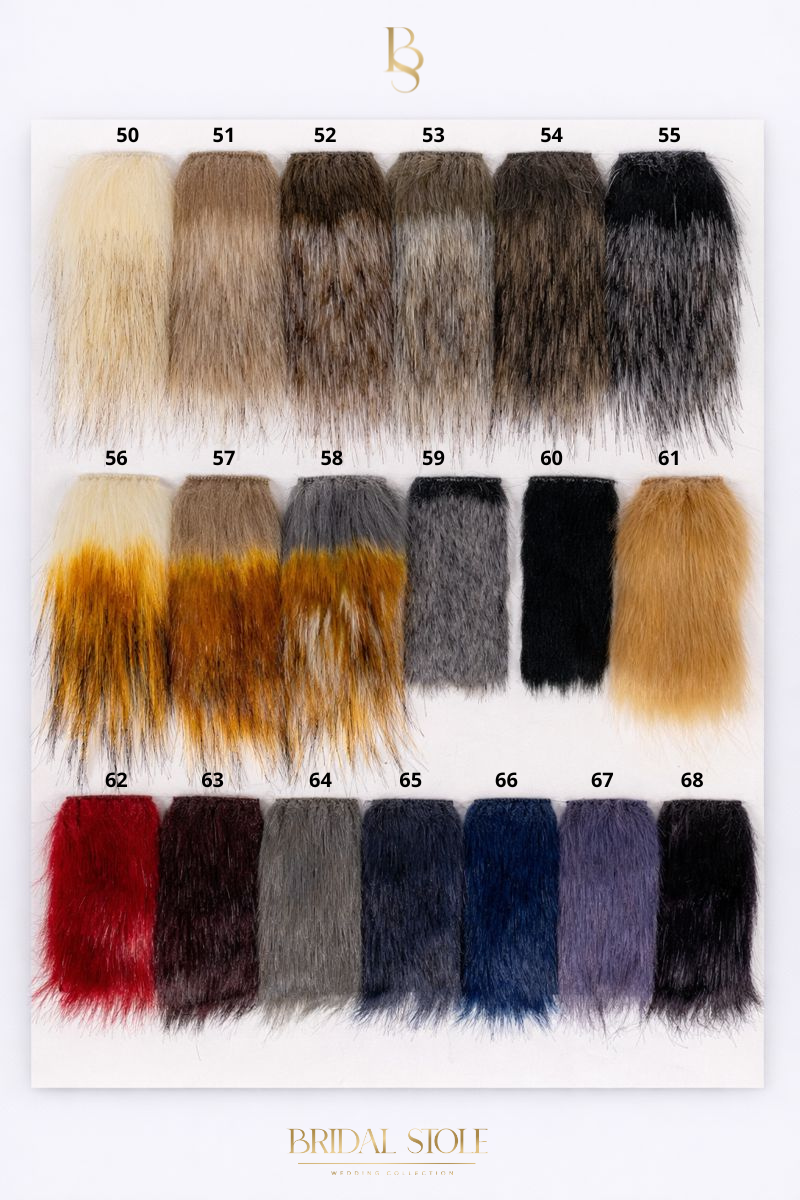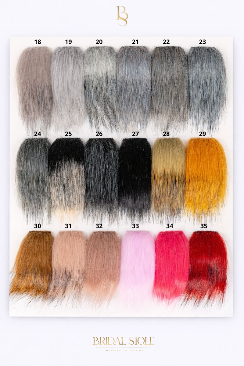 Jedes Felljäckchen mit langem Flor können wir auf Bestellung anfertigen, indem Sie eine Farbe aus dem untenstehenden Farbmuster wählen. Wählen Sie einfach das gewünschte Modell auf der Website aus, wählen Sie in der Größentabelle die Option „Maßanfertigung“ und geben Sie während des Bezahlvorgangs im Kommentarfeld die Farbnummer des Felljäckchens an.