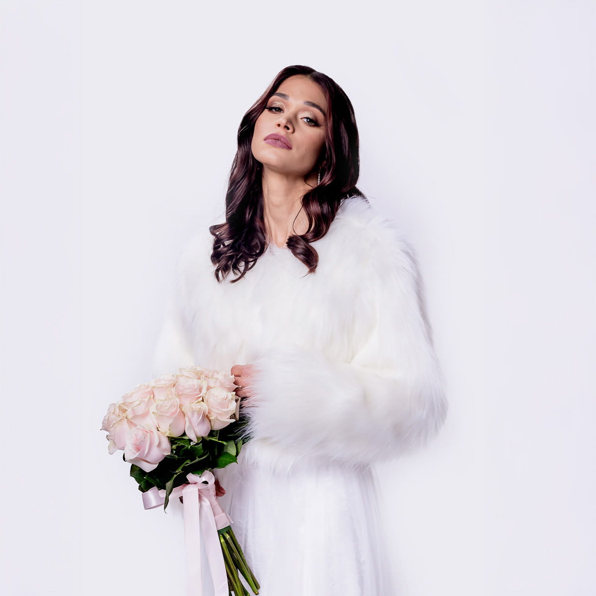 BRIDAL STOLE - Brautpelz Hochzeitsumhang Überwurf WEISS