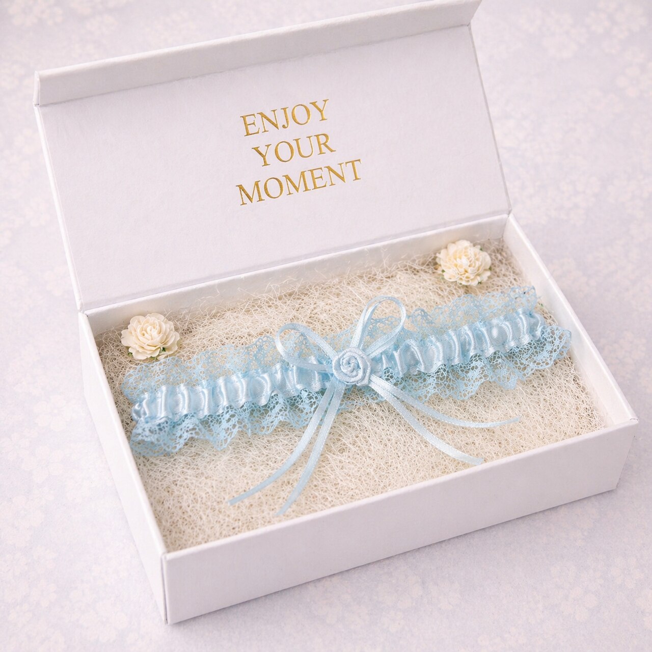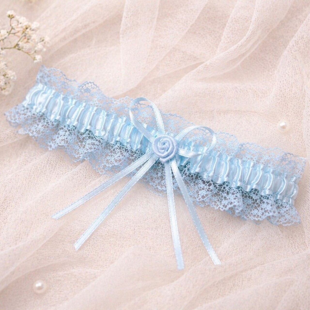 Jedes handmade Hochzeits-Strumpfband entsteht in unserem Studio mit großer Liebe zum Detail. Die elastische Hochzeitsspitze in zartem Blau liegt weich am Bein, drückt nicht und sorgt für angenehmen Komfort den ganzen Tag – von den Vorbereitungen über die Zeremonie bis zur Hochzeitsfeier.