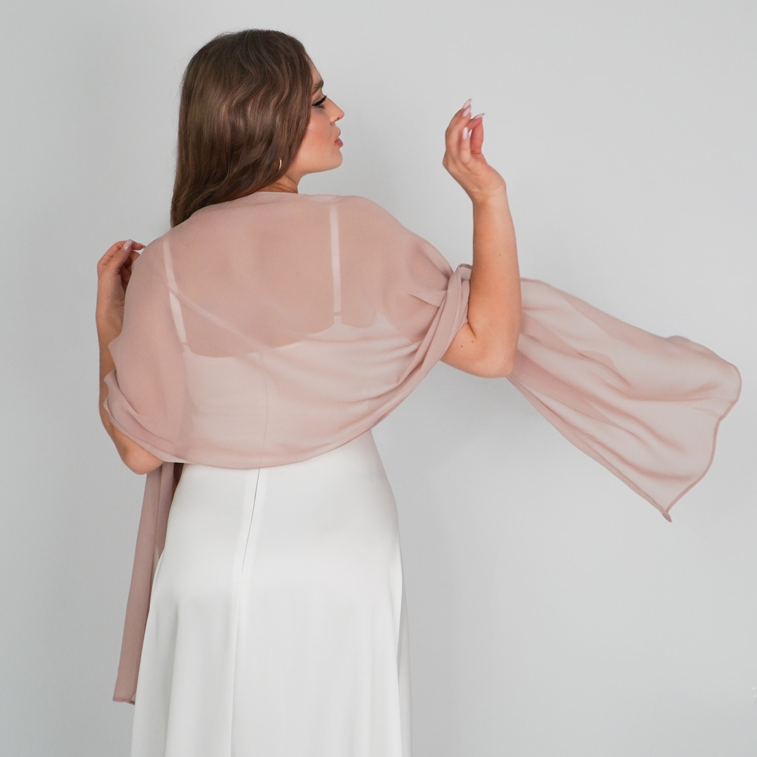 Wenn du eine Brautstola suchst, die elegant und vielseitig zugleich ist, ist der Chiffon-Schal Puderrosa die perfekte Wahl.