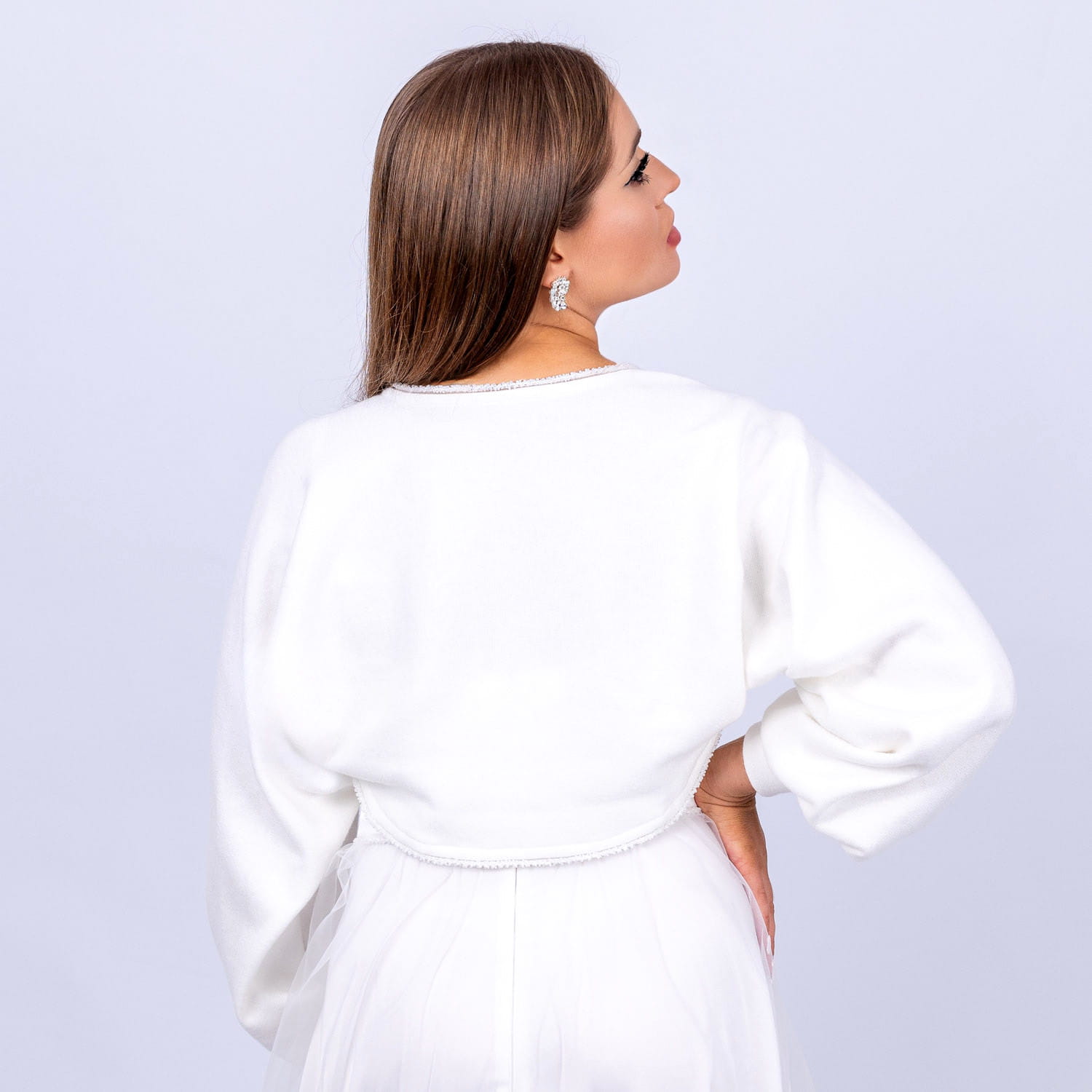 SARAH - Brautbolero Mit Puffigen Ärmeln Brautumhang Brautpullover Weiss