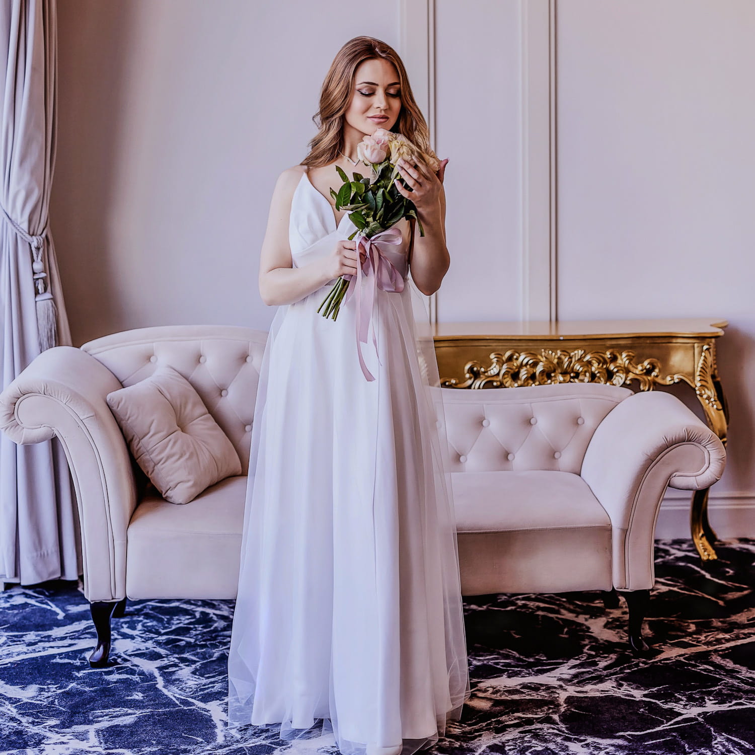 Entdecke das Brautkleid Solea – eine wunderbare Wahl für Bräute, die klassische Eleganz, Schlichtheit und weiblichen Charme schätzen. Das Modell Solea ist ein leichtes und fließendes Tüllkleid mit zarten Trägern, die die Schulterlinie und das Dekolleté wunderschön betonen.
